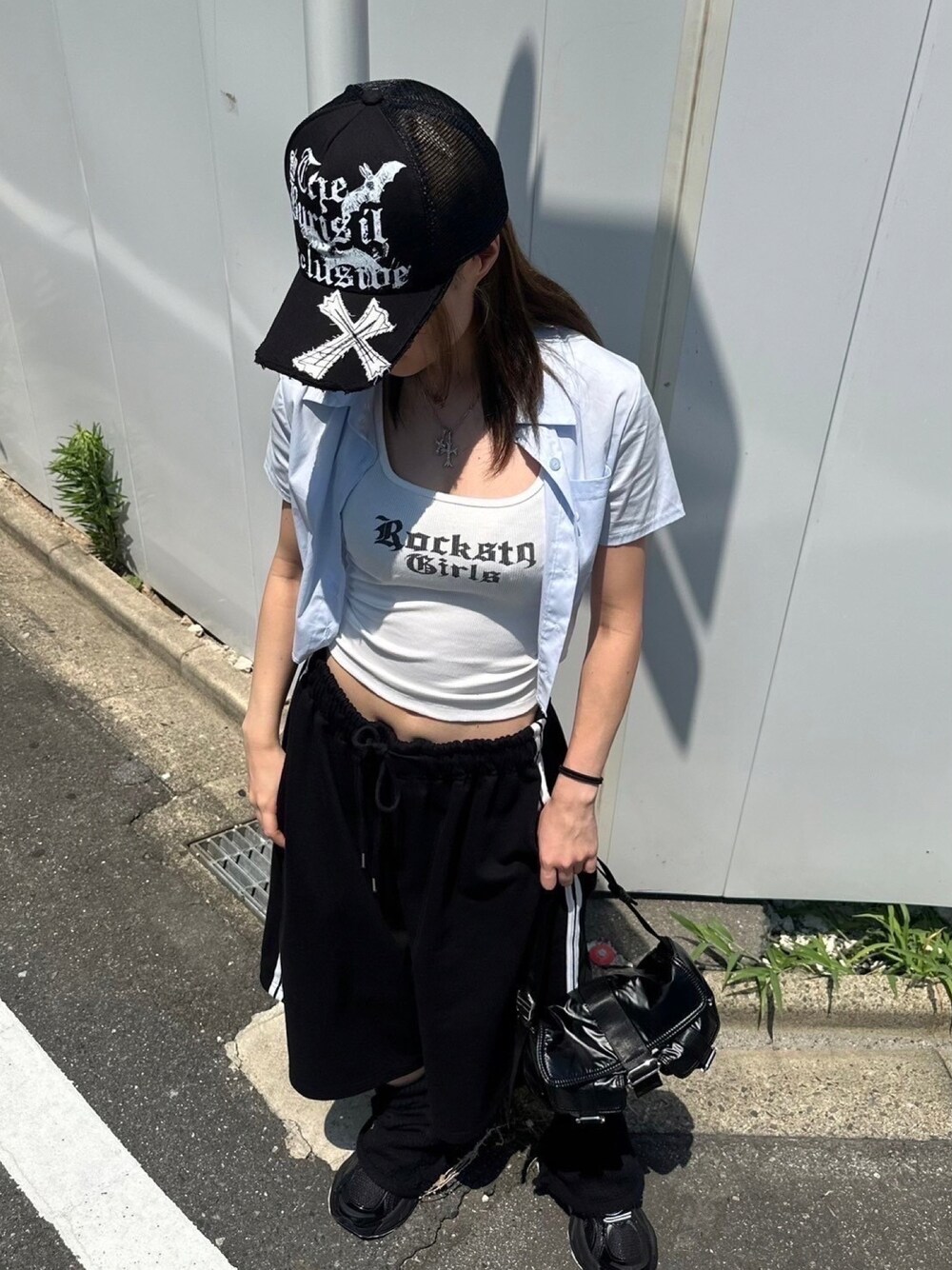 Never mind the XU / Chikashitsu+(Never mind the XU / Chikashitsu+)のキャップ「ストリートファッション XU エックスユー cross damage mesh cap クロスダメージメッシュキャップ パッチワークロゴキャップ プリントロゴキャップ 十字架キャップ 韓国ファッション 韓国ストリート Y2K」を使ったコーディネート