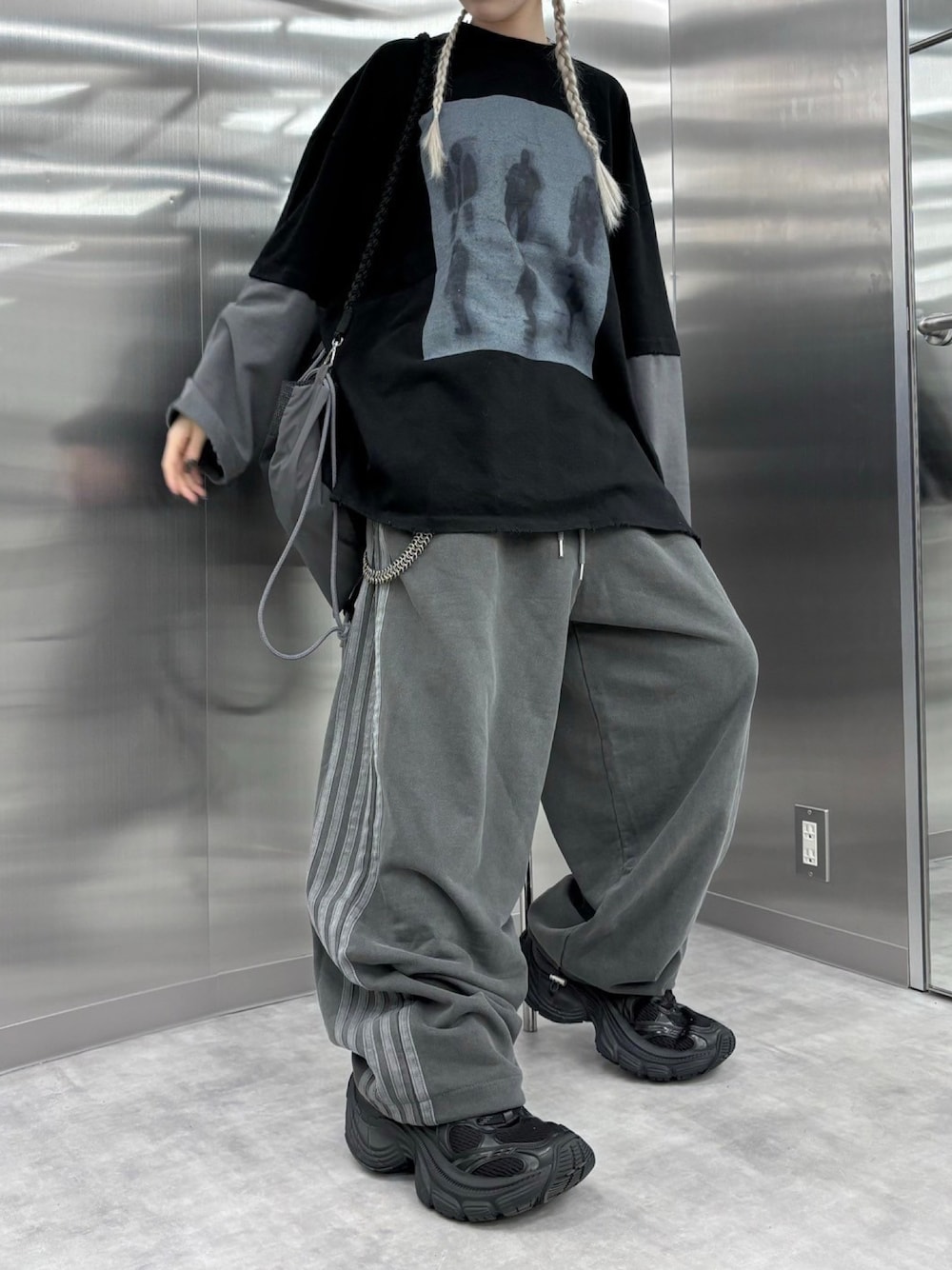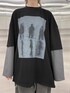 Never mind the XU / Chikashitsu+(Never mind the XU / Chikashitsu+)のTシャツ/カットソー「韓国ファッション nmtc + エヌエムティーシープラス bi-color layered long sleeve tee バイカラーレイヤードロングスリーブTシャツ プリントTシャツ ロンT オーバーサイズ グラフィックTシャツ 長袖Tシャツ 長袖トップス 韓国ストリート ストリートファッション」を使ったコーディネート