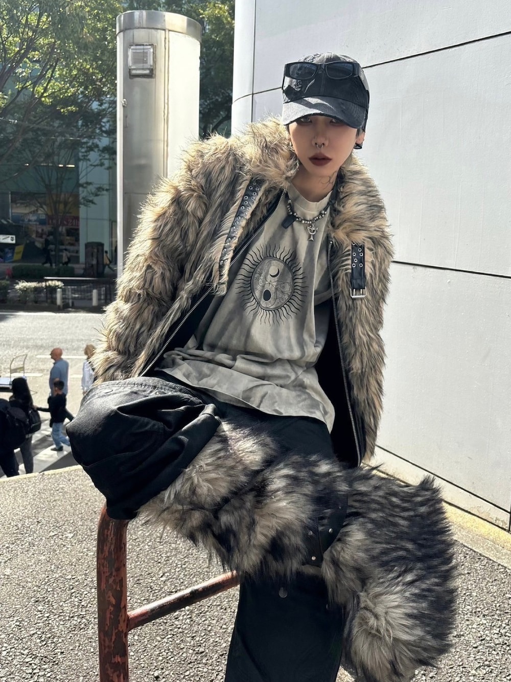 Never mind the XU / Chikashitsu+(Never mind the XU / Chikashitsu+)のキャップ「ストリートファッション XU エックスユー damage cap ダメージキャップ 帽子 デニムキャップ ブラックキャップ 黒キャップ 韓国ファッション 韓国 ストリート」を使ったコーディネート