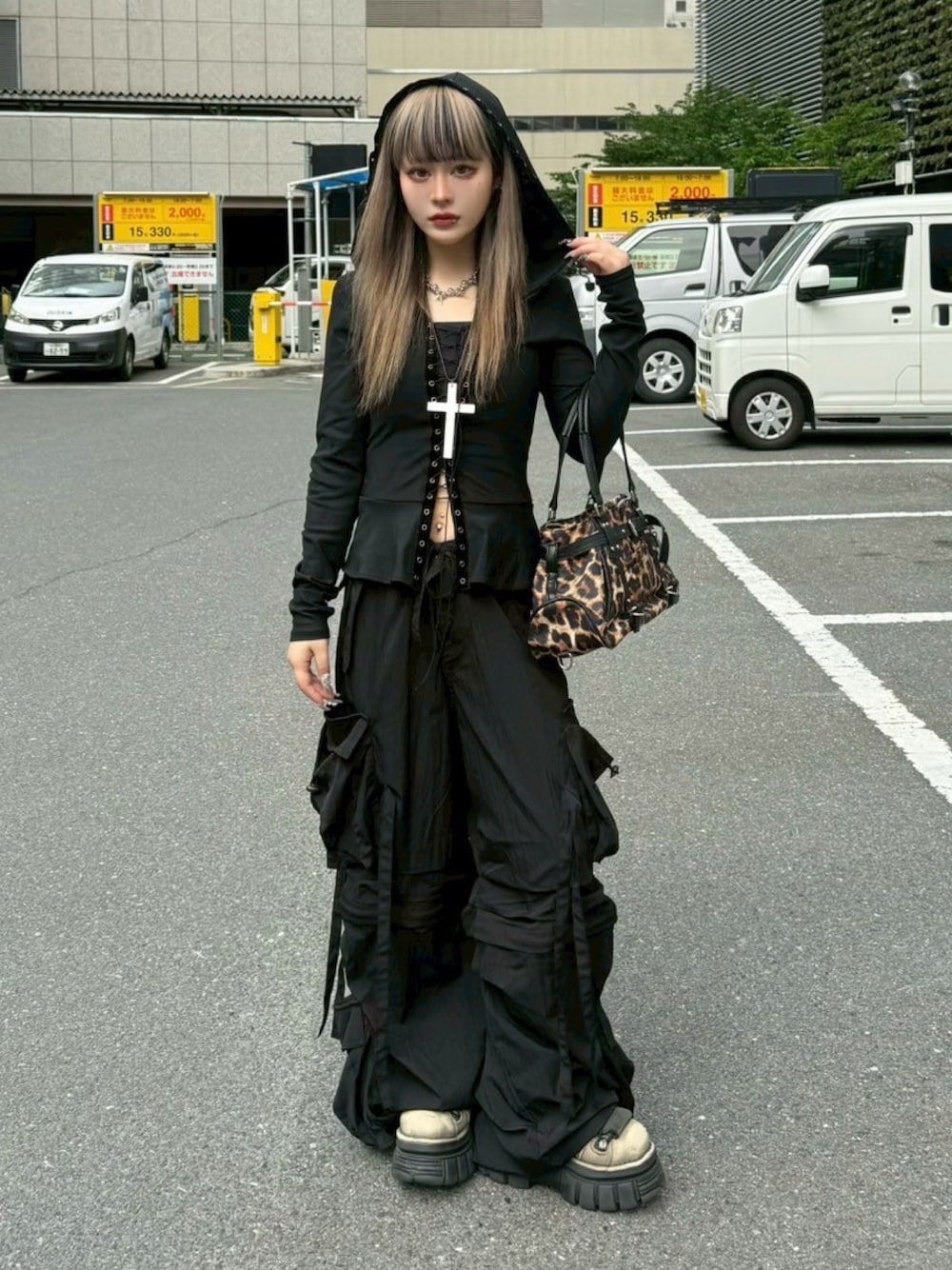 🛸👽🌐photo by XU🌐👽🛸 身長:153 体型:普通 骨格:ストレート 【パンツ】 サイズ感:かなりワイドなオーバーサイズ。裾は厚底の上からもたっぷり落ちるくらい長めで、重めのシルエットが個性を強調。ウエストはドローコードで調整できる仕様。 素材感:シャリ感のあるナイロン系の素材で、マットな質感。タックやポケット、リボンなどのディテールがたっぷり入っていて立体的。動くたびに生地が揺れるのも魅力。 着心地:ゆったりしていて締め付け感ゼロ。体型カバーカも◎。ボリュームはあるけど、意外と軽そうな印象。 【パッグ】 サイズ感:中サイズで、収納力あり。ちょっとした外出にぴったりな実用的サイズ感。 素材感:レオパード柄のポリエステルで、少しツヤ感のあるプリント生地。持ち手と縁取りはフェイクレザーで、しっかり感とギャル感を両立。 持ち心地:軽量で、ショルダーつきで肩掛けも手持ちもOK。見た目より柔らかい素材なので、荷物が多くても扱いやすそう。 店頭、通販で好評発売中です!是非チェックしてみてください✨ 実店舗🛒 -関東- XU TOKYO (ラフォーレ原宿4F) XU SHIBUYA(渋谷109 7F) Admire/Pressing outlet(東京 裏原宿) nmtc+(ラフォーレ原宿4F XU横) Chikashitsu+ TOKYO(渋谷区神宮前) -関西- XU OSAKA (梅田EST C27) DOG OSAKA (大阪 アメ村) Chikashitsu+(大阪 南堀江) Nerd out XU (あべのキューズモール2F) -中部- XU NAGOYA (名古屋 大須) Chikashitsu+ NAGOYA (名古屋パルコ西館6F) nmtc+ NAGOYA(名古屋パルコ西館4F) -中国- XU HIROSHIMA(広島パルコ本館6F) -東北- XU SENDAI (仙台パルコ本館6F) -九州- XU FUKUOKA (福岡 大名) Instagramのフォローもお願い致します😊 @xu_tokyo @xu_shibuya @xu_osaka @xu_nagoya @xu_fukuoka @xu_sendai @xu_hiroshima @nmtc_plus @nmtc_plus_nagoya @nerd_out_xu @dogosaka @chikashitsuplus_official @chikashitsuplus_nagoya @chikashitsuplus_tokyo