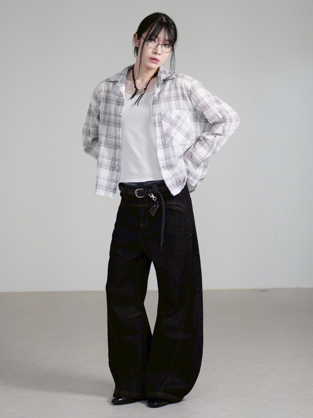 Never mind the XU / Chikashitsu+(Never mind the XU / Chikashitsu+)のシャツ/ブラウス「【Chikashitsu +】cropped linen check shirt / 【チカシツプラス】クロップドリネンチェック長袖シャツ」を使ったコーディネート