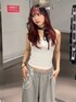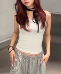 Never mind the XU / Chikashitsu+(Never mind the XU / Chikashitsu+)のタンクトップ「【Never mind the XU】rhinestone sleeveless / 【ネバーマインド ザ エックスユー】ラインストーンタンクトップ」を使ったコーディネート