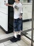 Never mind the XU / Chikashitsu+(Never mind the XU / Chikashitsu+)のTシャツ/カットソー「【Chikashitsu +】dirty wash logo half sleeve t-shirt / 【チカシツプラス】ダーティウォッシュロゴ半袖Tシャツ」を使ったコーディネート