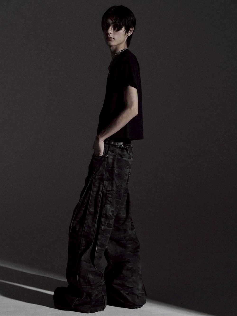 Never mind the XU / Chikashitsu+(Never mind the XU / Chikashitsu+)のデニムパンツ「【Rosen Kreuz】ZIP WIDE BAGGY PANTS / 【ローゼンクロイツ】ジップワイドバギーカモフラデニムパンツ」を使ったコーディネート