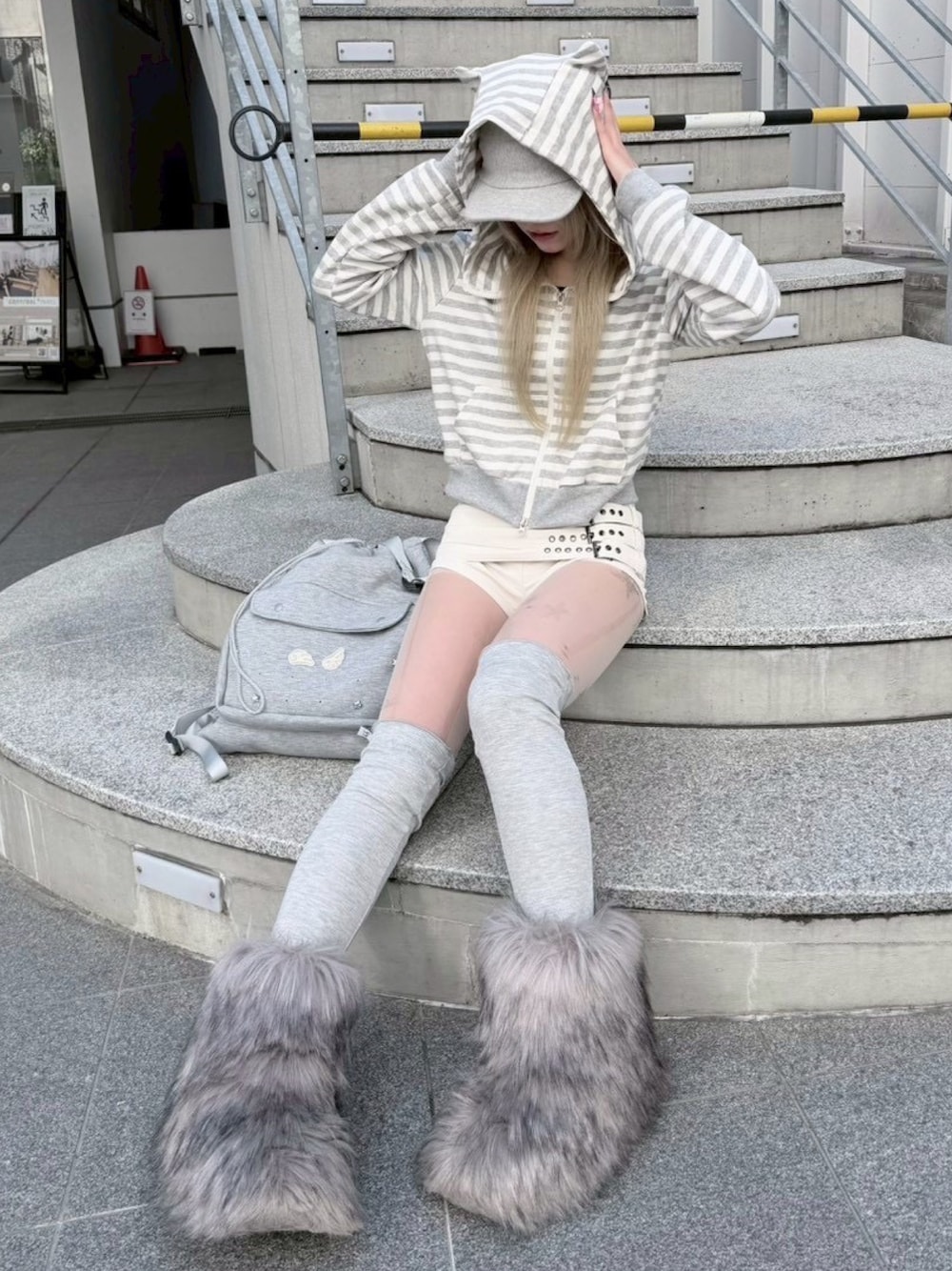 Never mind the XU / Chikashitsu+(Never mind the XU / Chikashitsu+)のパーカー「【nmtc+】border horn zip up hoodie / 【エヌエムティーシープラス】ボーダーツノジップアップパーカー」を使ったコーディネート
