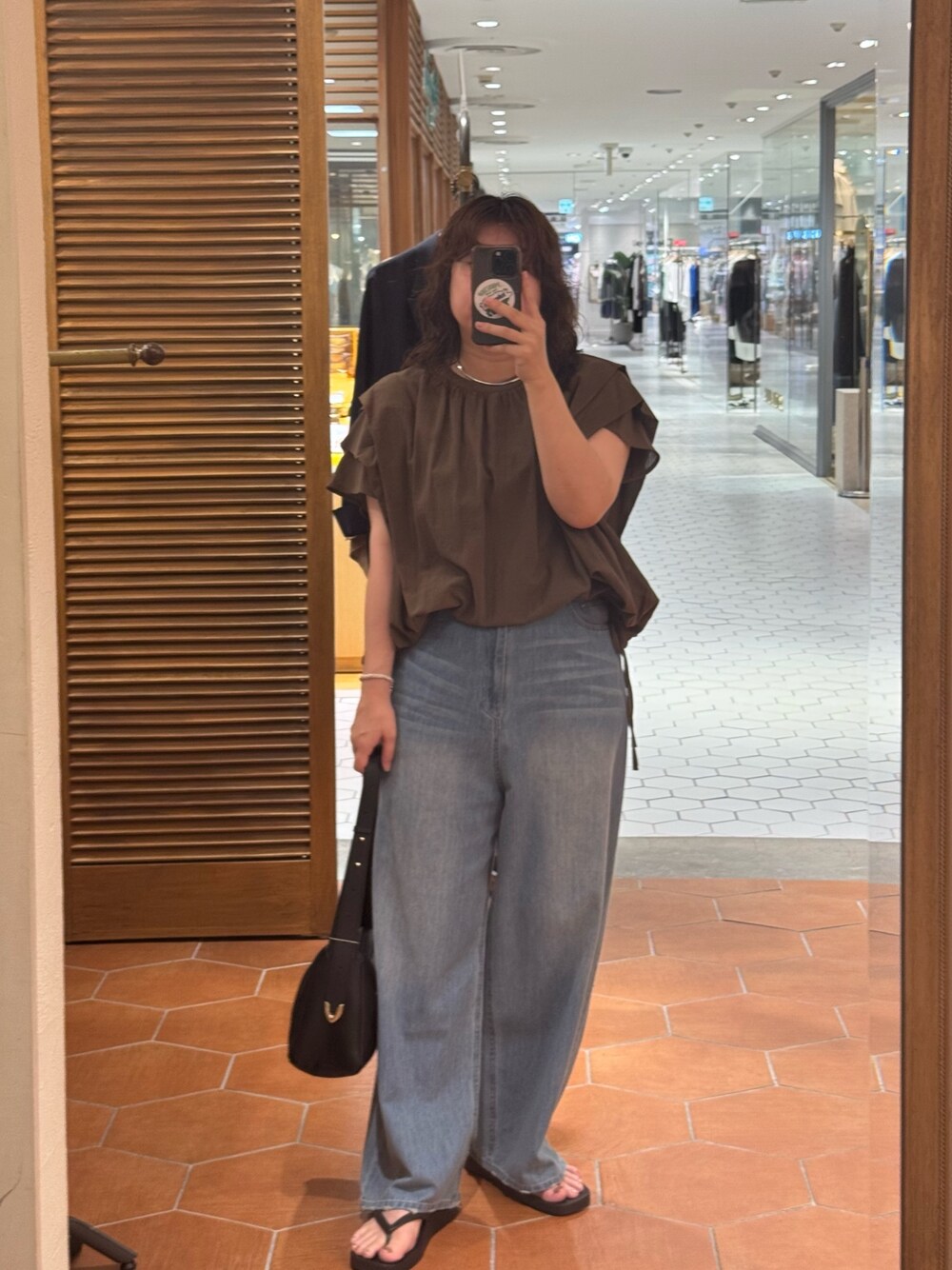 トップス:一枚で着映えするブラウスです。 肩にタックが入っているので腕周りもカバーしてくれます。