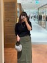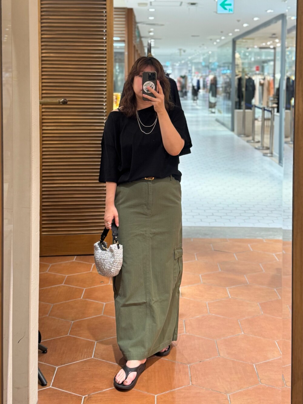 スカート:38size着用 長さたっぷりな大人カーゴスカート。 シンプルにカットソーで合わせてみました。