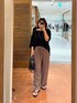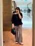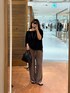 トップスはMONNのLOOSE KNIT Tee。 首元は女性らしく、抜け感のあるデザインです。 袖は肘が隠れるくらいの5部袖です。