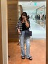 パンツ:デニムはフレアシルエットで脚長効果が! ダメージ加工ですが肌が見えないので大人でも安心です。 トップス:一枚取り入れるだけで雰囲気をガラッと変えられるチェックシャツ。 レーヨン素材で落ち感があり、落ち着いたカラーの子供っぽくならないチェックシャツです。