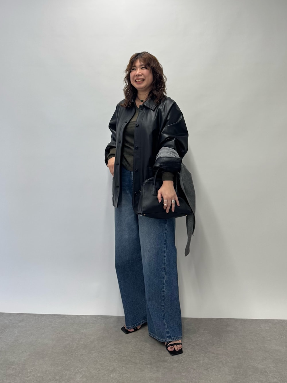 オーバーシルエットでゆったりと着られるレザージャケット! 羊革なのでかちっとしすぎず柔らかな肌触です。 デニムは切り替えがポイントに。