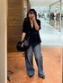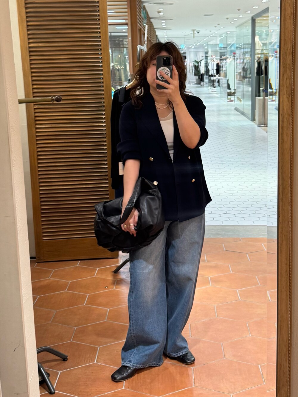ジャケット:接触冷感でカーディガン感覚でサラッと着ていただけるニットジャケットです。 デニム:履くだけでこなれ感がでる、ゆるっとデニムです。