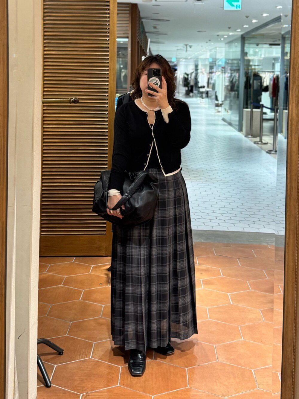 トップス:レイヤード風のカーディガンなので、こなれ感も出てコーディネートのポイントに。 スカート:38size プリーツですが薄手で軽い生地なので広がりすぎず着ていただけます。