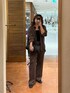 スウェード見えのセットアップです。 生地が滑らかで落ち感があるのでハードになりすぎず、ストレッチも効いているので着心地も楽です。
