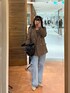 ストレッチ素材で動きやすくシワになりにくいジャケットです。 着るだけできちんと感がでるアイテムです。 カジュアルにデニムであわせてみました。 インナーはシアーニットで涼しく。