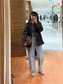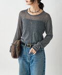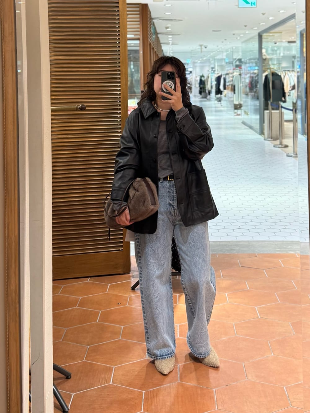 レザージャケットはラムレザーなので、柔らかくて滑らかな着心地。 牛革と違いカチッとならずに着ていただけます! インナーはシアーニットで抜け感を出してみました。