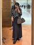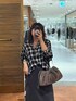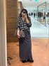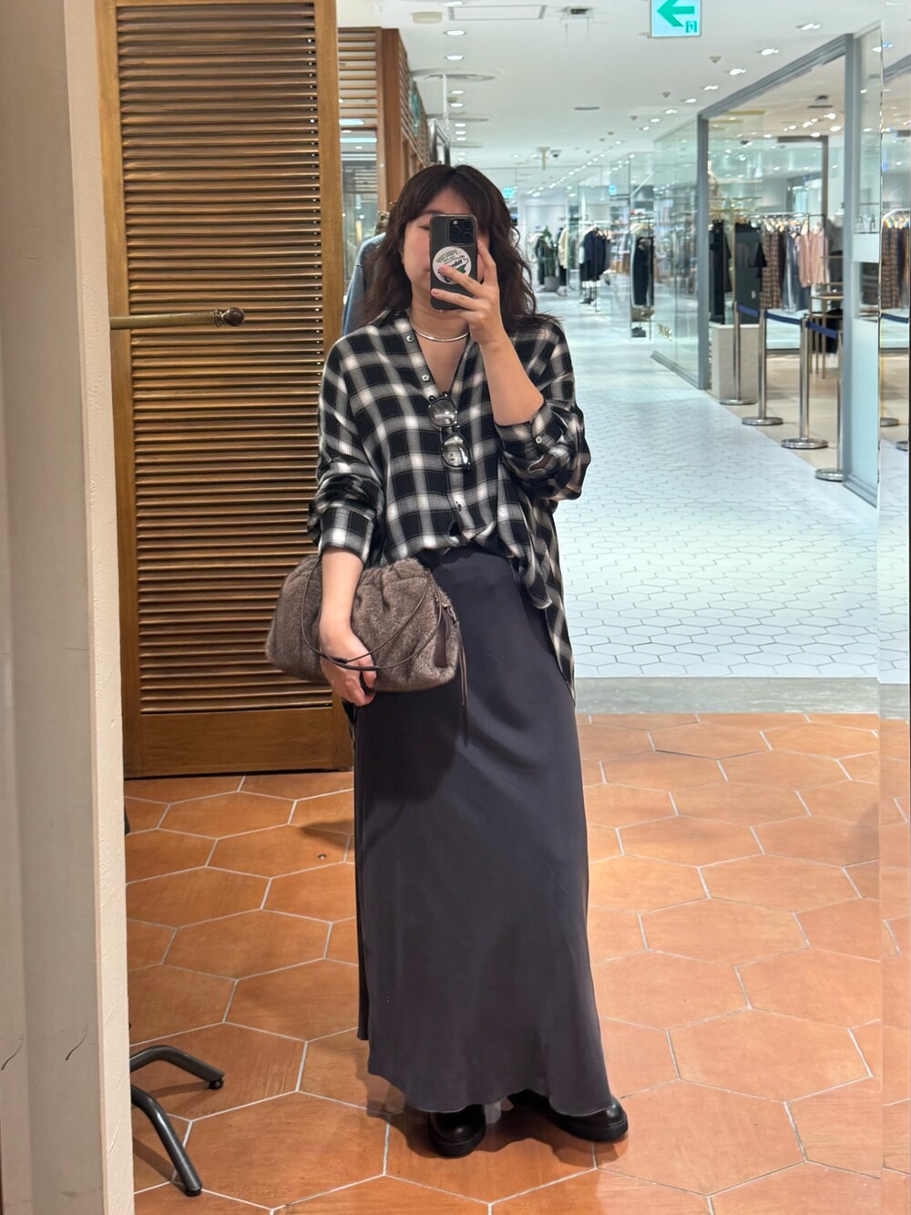 トップス:レーヨン素材で柔らかく落ち感があるチェックシャツ。 オーバーシルエットですがスッキリ着られます。 スカート:程よいフレア感でシルエットが綺麗なスカートです。キュプラ混んで静電気が起きにくいのも◎