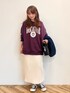 アウター:M これからの季節に大活躍するカバーオール。 ゆとりのあるサイズ感なので、中にスウェットを着てもかさばりませんでした。 大きめのポケットが嬉しいポイントです◎ トップス:M カレッジロゴがポイントのプルオーバー。 オーバーサイズで着心地良く、シャツをインしたレイヤードスタイルなどが楽しめます。 スカートにもパンツにも合う、着回し力抜群のアイテムです◎ ボトムス:M リブ素材のナロースカート。 伸縮性があり、後ろにはスリットが施されているので足さばきも楽です。 ウエストはゴム仕様なので着脱もストレスフリーです◎