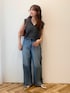 トップス:Mサイズ ローゲージ編みのニットベスト。 トレンド感のあるコンパクトな丈感で、夏は一枚、冬はカットソーなどとレイヤードすることでロングシーズン着ていただけます。 M・Lで丈感が異なる「選べる丈シリーズ」のアイテムです◎ ボトムス:Mサイズ サイドライン加工がポイントのデニムパンツ。 ゆとりのあるシルエットで、穿くだけでこなれ感がでるデザインデニムです◎
