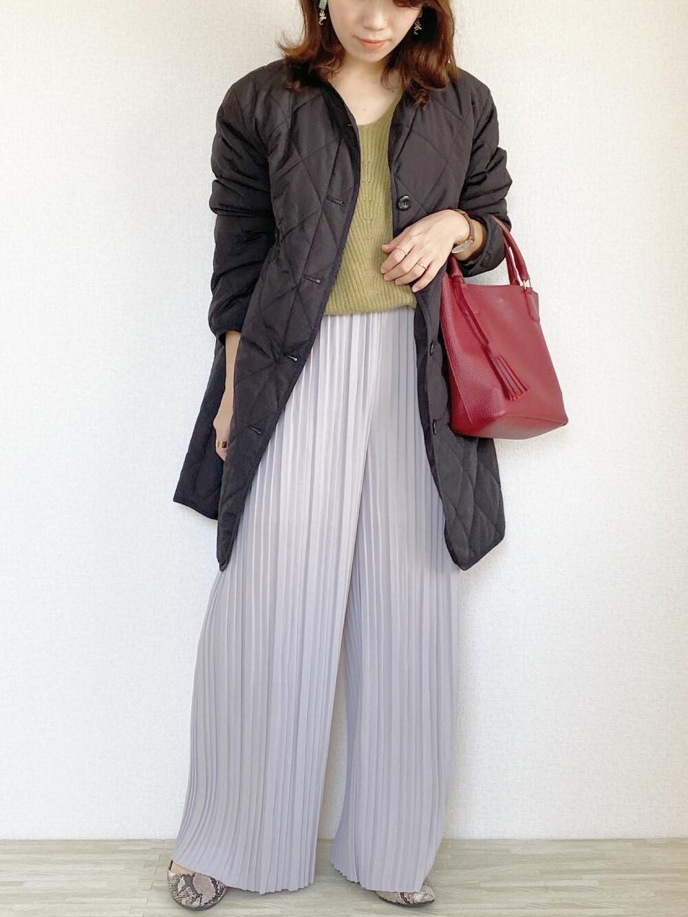 アウターはちょっと薄めだけど 子どもと公園行く時とか雨の日とかでも 気にせずガンガン着れる! そんな1着です(*´◡`*) インナーダウンにしてもいいかも。 ニットはゆるっと着れるので出してても可愛いんだけど アウター着るならインした方が良さげ◟̆◞̆*