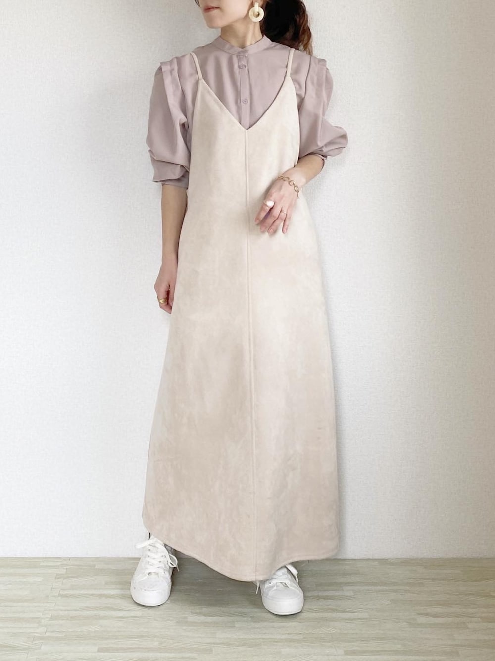 Nanaのワンピース「【洗える】【パウダータッチエコスエード】キャミワンピース」を使ったコーディネート