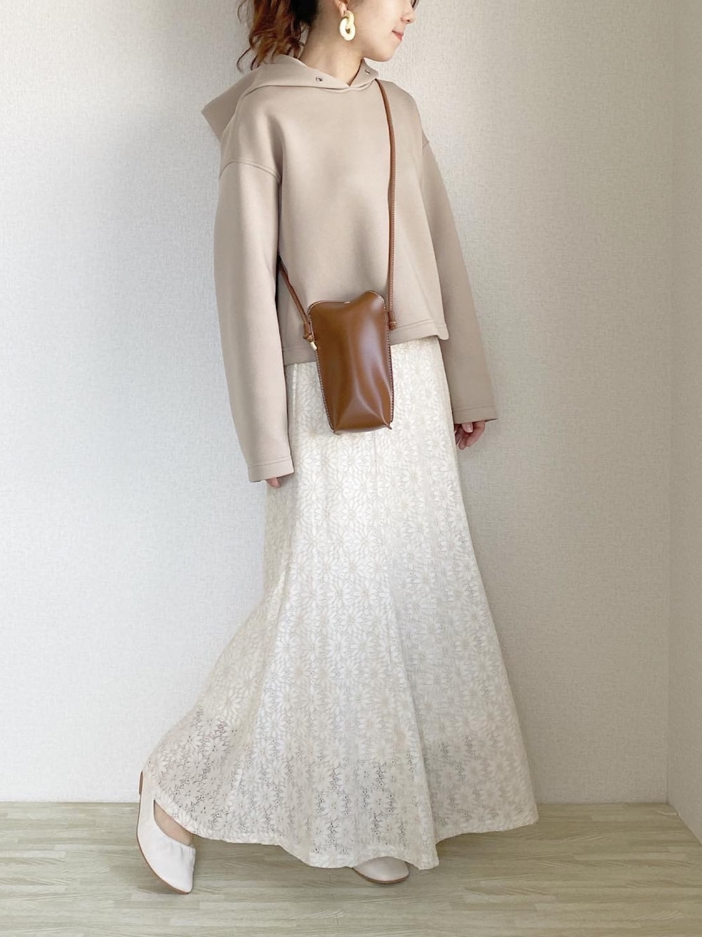 ご覧いただきありがとうございます◟̆◞̆* パーカー×ロングスカート❁ 春になると絶対やりたくなるコーデ◟̆◞̆* 我ながらこのコーデ好きだなぁ♡ レーススカートだけど マーメイドラインで大人っぽいし さらにパーカーでカジュアルさもプラスして 大人可愛いと思います(⑅•ᴗ•⑅) Instagramは更新してるのに こちらがだいぶ疎かに… 今日頑張って追いつきたい。
