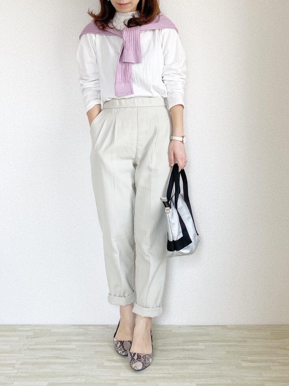 ご覧いただきありがとうございます◟̆◞̆* 上下ホワイトコーデにきれい色をプラスして春っぽく♡ 昔のプロデューサー風だけど(笑)