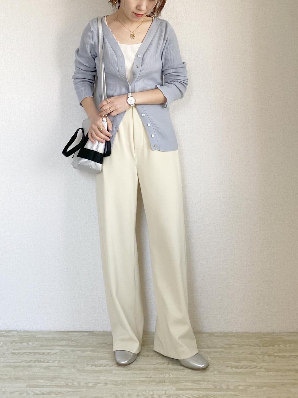 ご覧いただきありがとうございます◟̆◞̆* 上下とも神戸レタスなコーデ❃ 田中亜希子さんコラボパンツは 久しぶりにはきました。 これは2年前?くらいに買いましたが 今はさらにカラバリも増えてるみたいです♪ ウエストのサイズがボタンで調節できるので 小柄さんでもハイウエストではけます˚✧₊ 在宅の日はこんなゆるっとパンツが楽でいいな◟̆◞̆* カーディガンは星玲奈さんコラボのやつです。 大活躍中☆