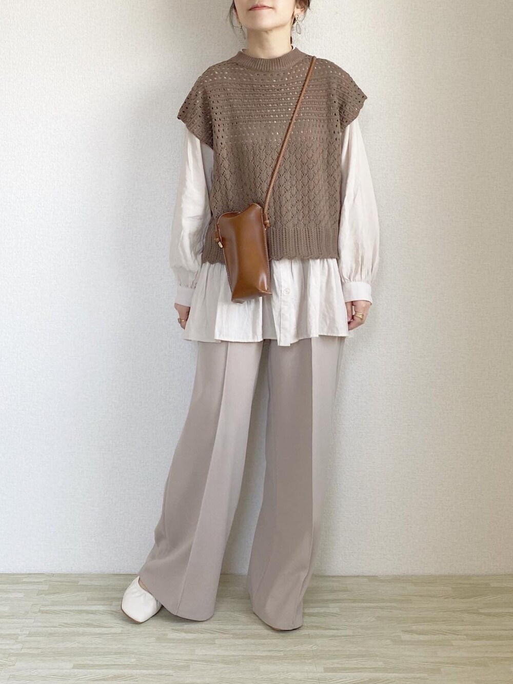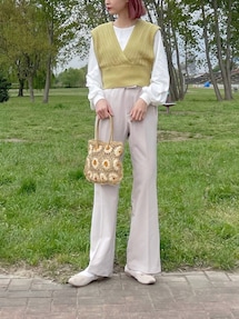Nanaのニット/セーター「【2021S/S New Arrival】透かし編みフレンチスリーブニット」を使ったコーディネート