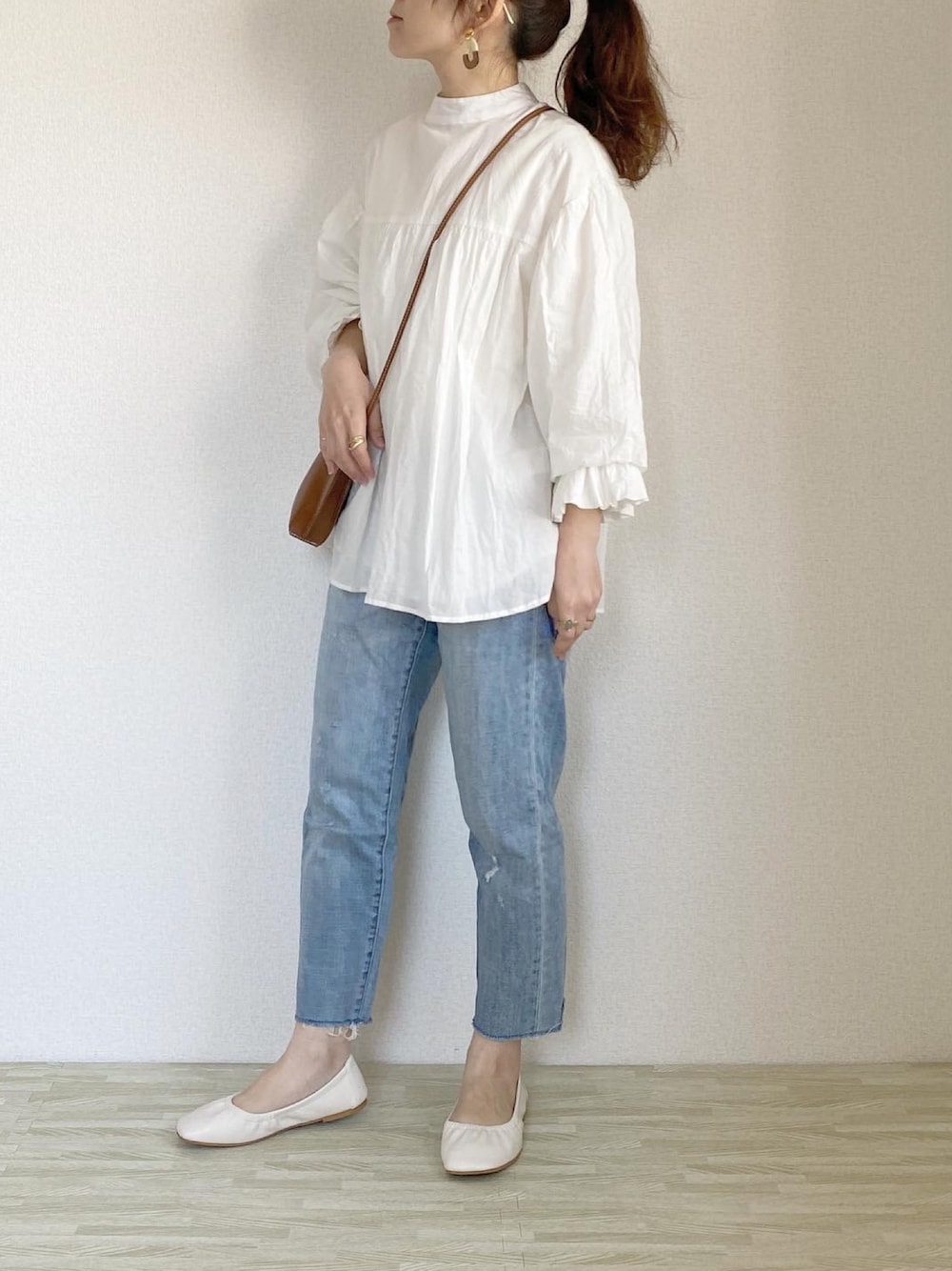 Nanaのシャツ/ブラウス「インド綿フリルボリューム袖シアーブラウス」を使ったコーディネート