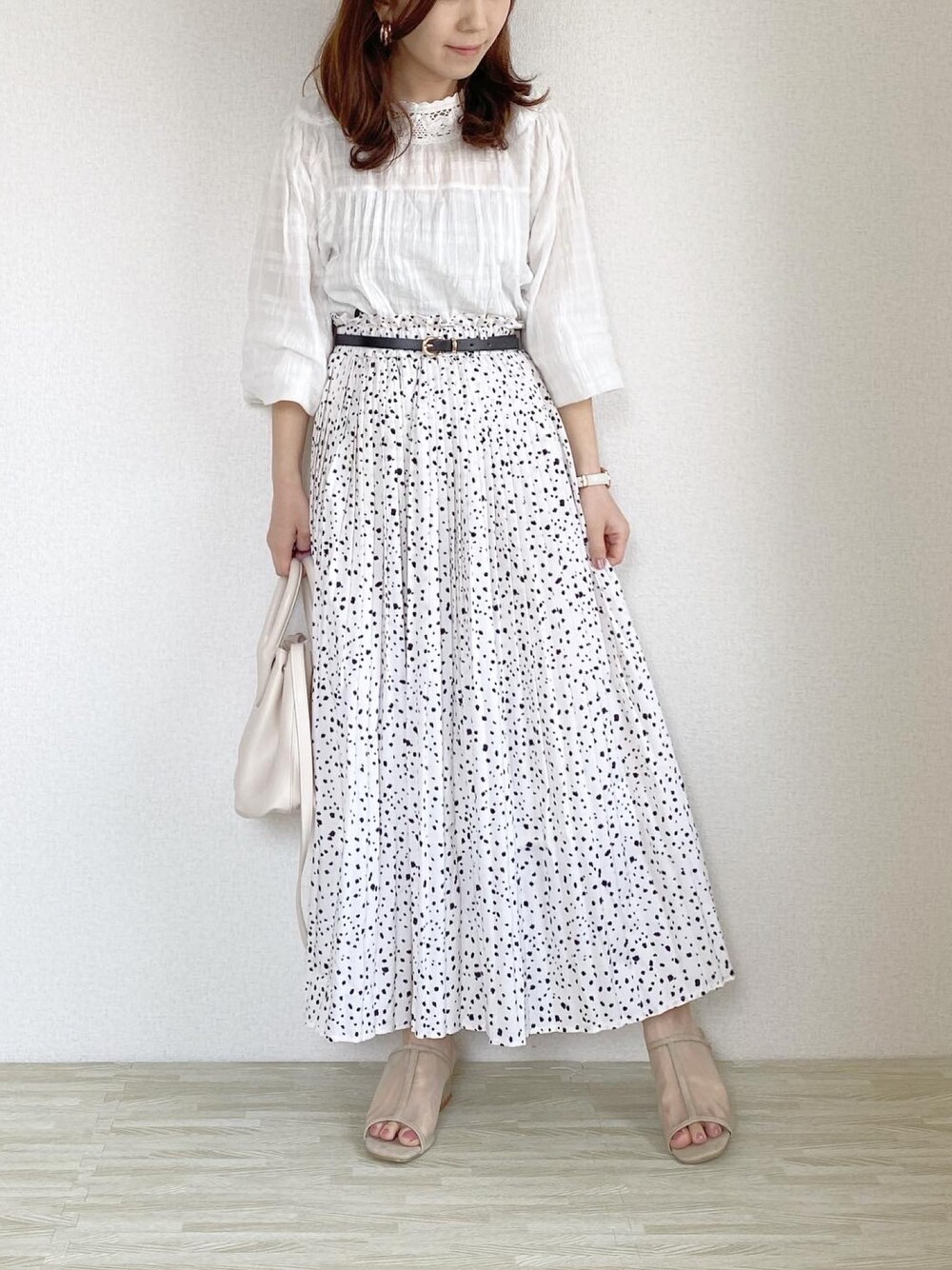 Nanaのスカート「ベルト付きドット柄プリーツスカート」を使ったコーディネート