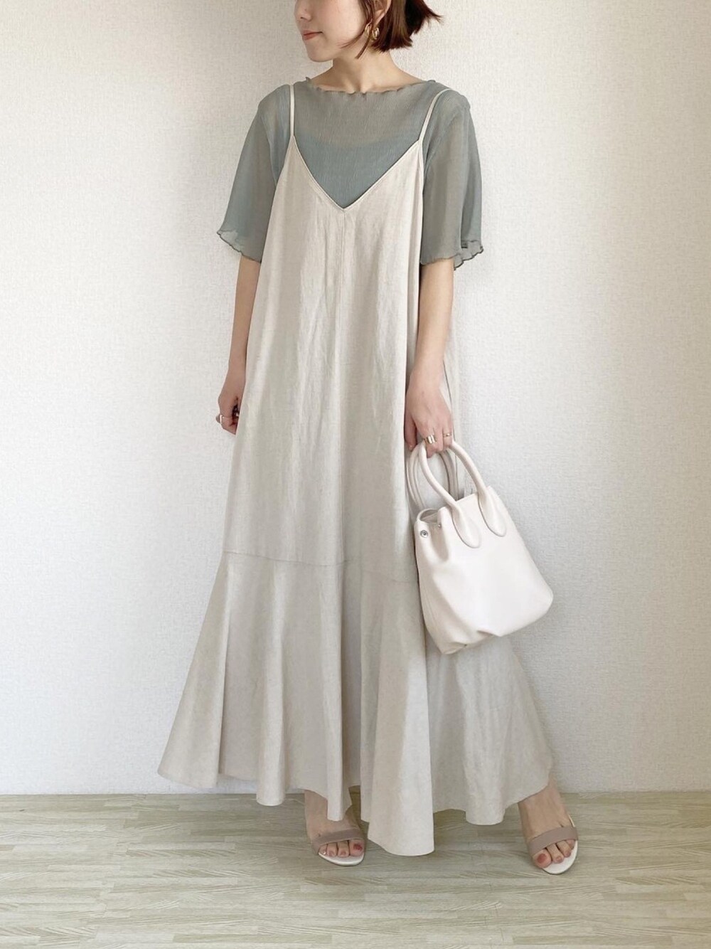 Nanaのワンピース「マーメイドライン切替キャミワンピース」を使ったコーディネート