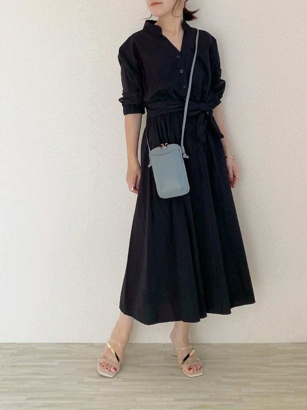 Nanaのワンピース「リネンライクフレアロングワンピース」を使ったコーディネート