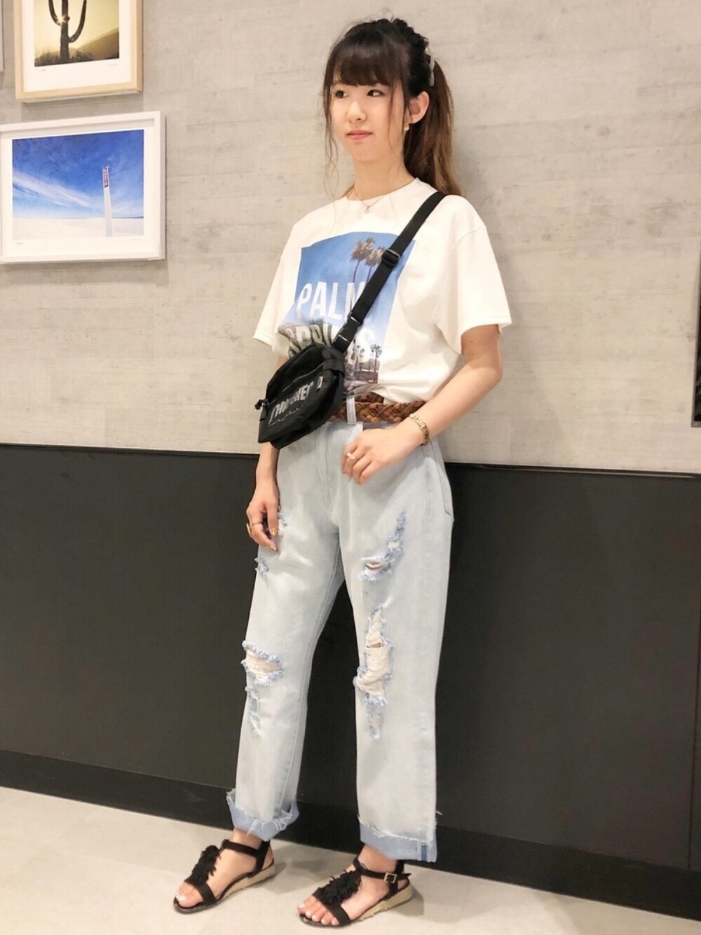 プリントT×ダメージジーンズでカジュアルな夏コーデ🌟 Tシャツはメンズのもので、BIGシルエットになっているのでMサイズでもゆったり着られます◎ こちらのダメージジーンズは薄めの軽い素材なので夏でも涼しく履けます🍀 裾が切りっぱなしになっているので、そのまま履いてもこのように1回折り返しても可愛いデザイン💓 Right-onのオンラインショップはプロフィールのURLから見られます!