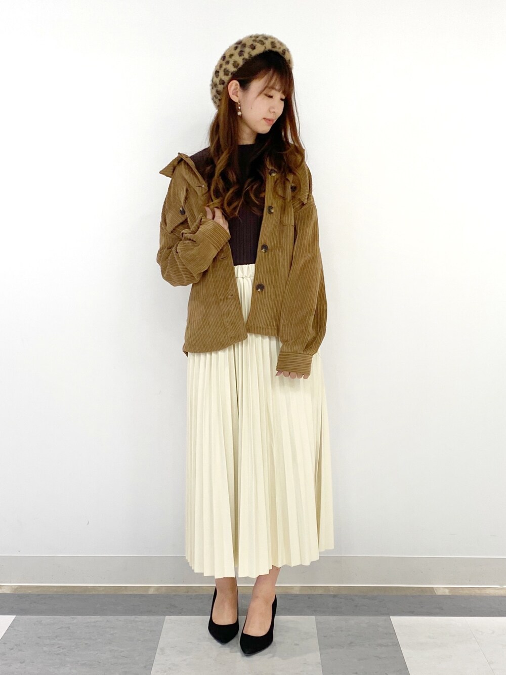 ゆったりとしたシルエットがかわいいコーデュロイのCPOシャツ♡ 襟を抜いて着るとより今っぽい着こなしになります👏🏻 ビッグシルエットのシャツは、こちらのボトルネックのインナーとも相性抜群です◎ スカートはこの秋トレンドのフェイクレザー♡ プリーツスカートでも甘くなりすぎないので、大人カジュアルなコーデにぴったりのアイテムです! しっかり長めの丈なのでら高身長さんにもおすすめ🌼 shirt→¥4000 knit→¥2500 skirt→¥4000 beret→¥2500 オンラインショップ掲載コーデです! Right-onのオンラインショップは、プロフィールのURLから見られます🧡