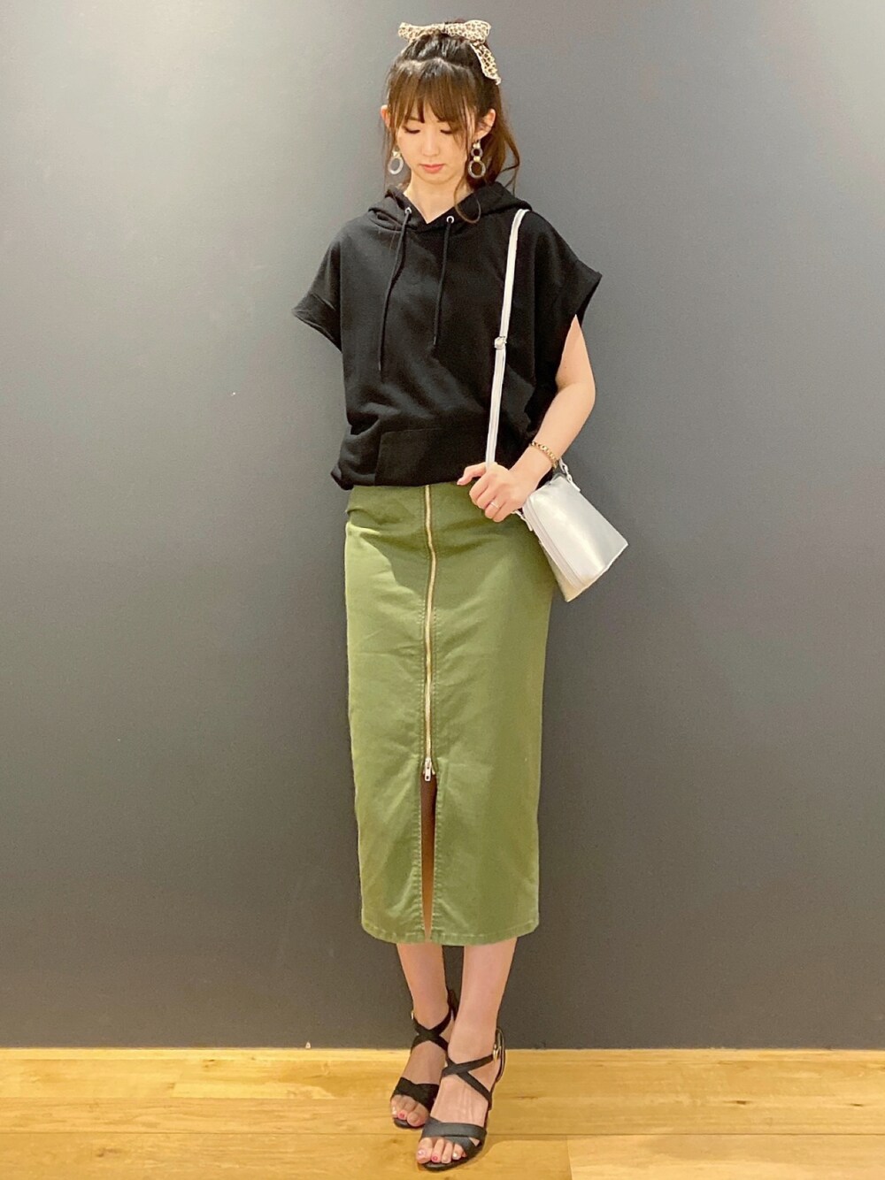 フード付きのパーカーでも、フレンチスリーブならカジュアルすぎず大人っぽく着られます🖤 ゆったりしたシルエットなので華奢見え効果もあります✨ スカートはSOMETHINGのタイトスカート🌿 しっかりした素材なので肉感を拾いにくく、すっきり綺麗に穿くことができます🌼 私が着ている商品は、プロフィールのURLオンラインショップから見られます!