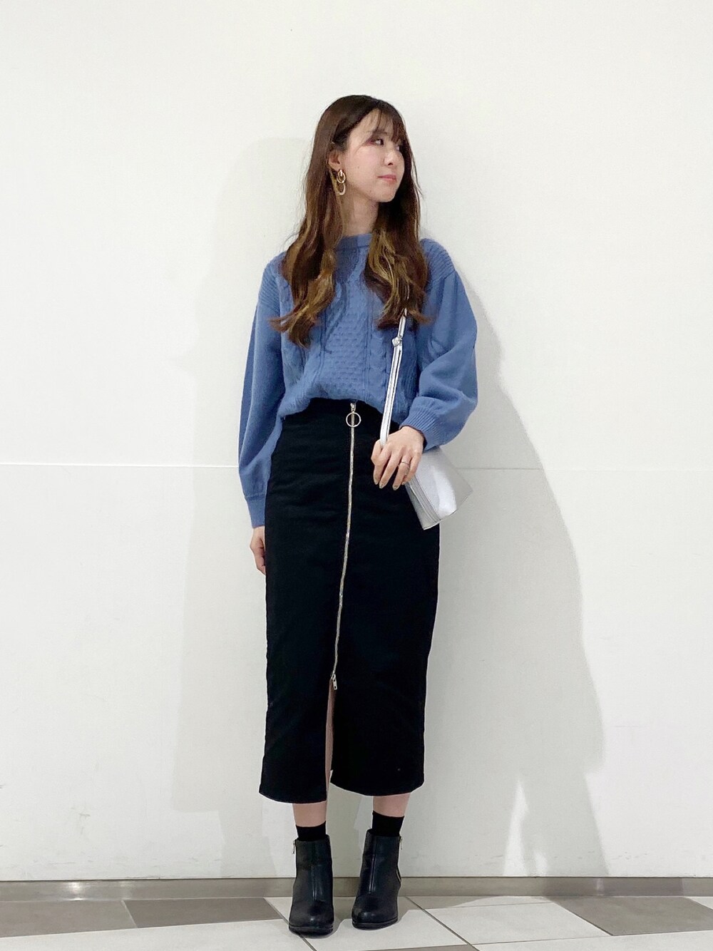 ・ ・ ゆったりニット×タイトスカート💙🖤 前だけインでゴワゴワせずに脚長効果👏🏻 私が着ている商品は、プロフィールのURLオンラインショップから見られます!