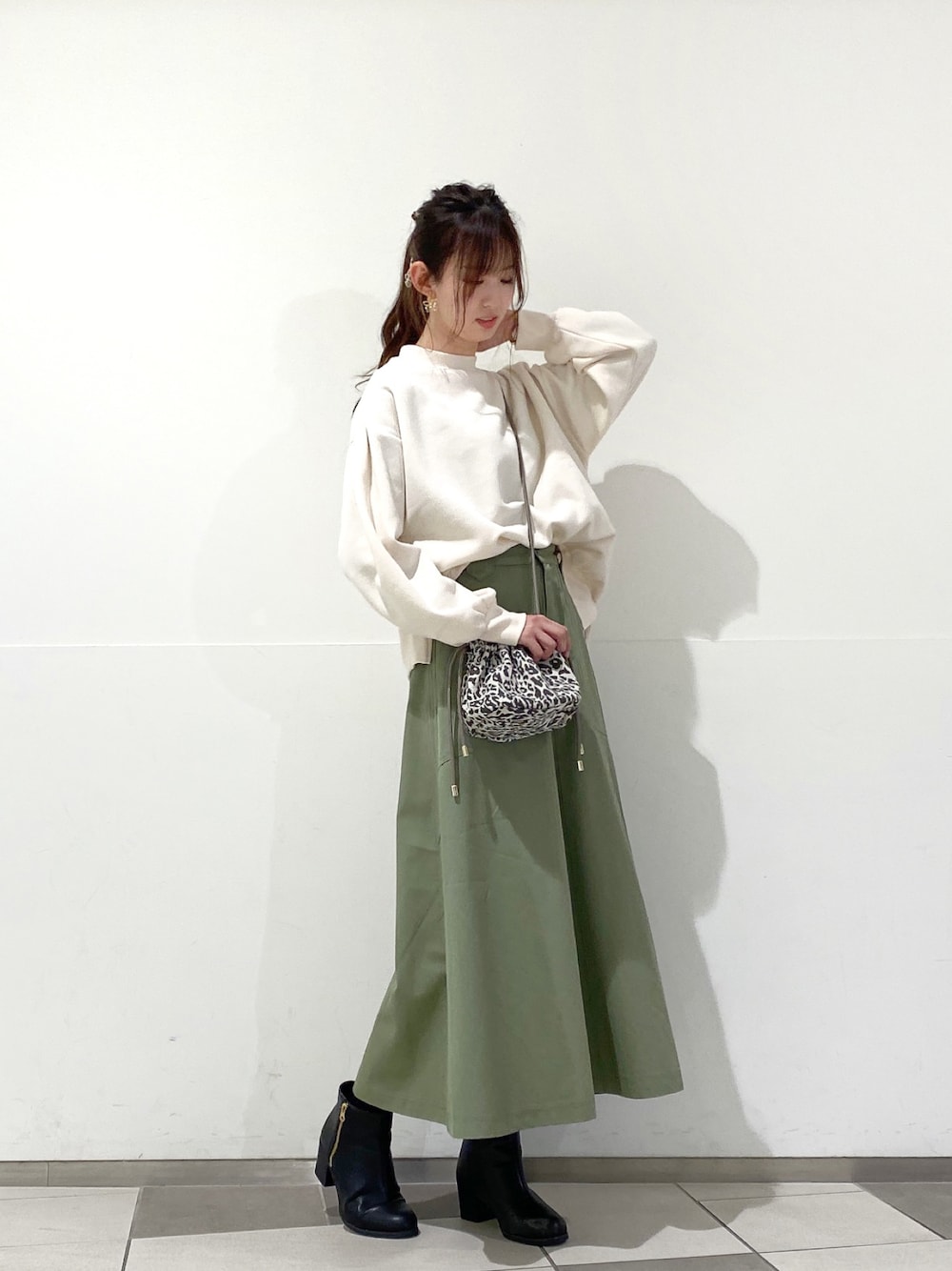 ゆるっとしたシルエットがかわいいモックネックのスウェット🤍 そでも丸みのあるシルエットになっています! スカートはボリューム感が女性らしくて、素材はパリッとカジュアルな素材になっています! 甘すぎずカジュアルに穿けるフレアスカートなので、大人女子におすすめのスカート🌿 私が着ている商品は、プロフィールのURLオンラインショップから見られます!