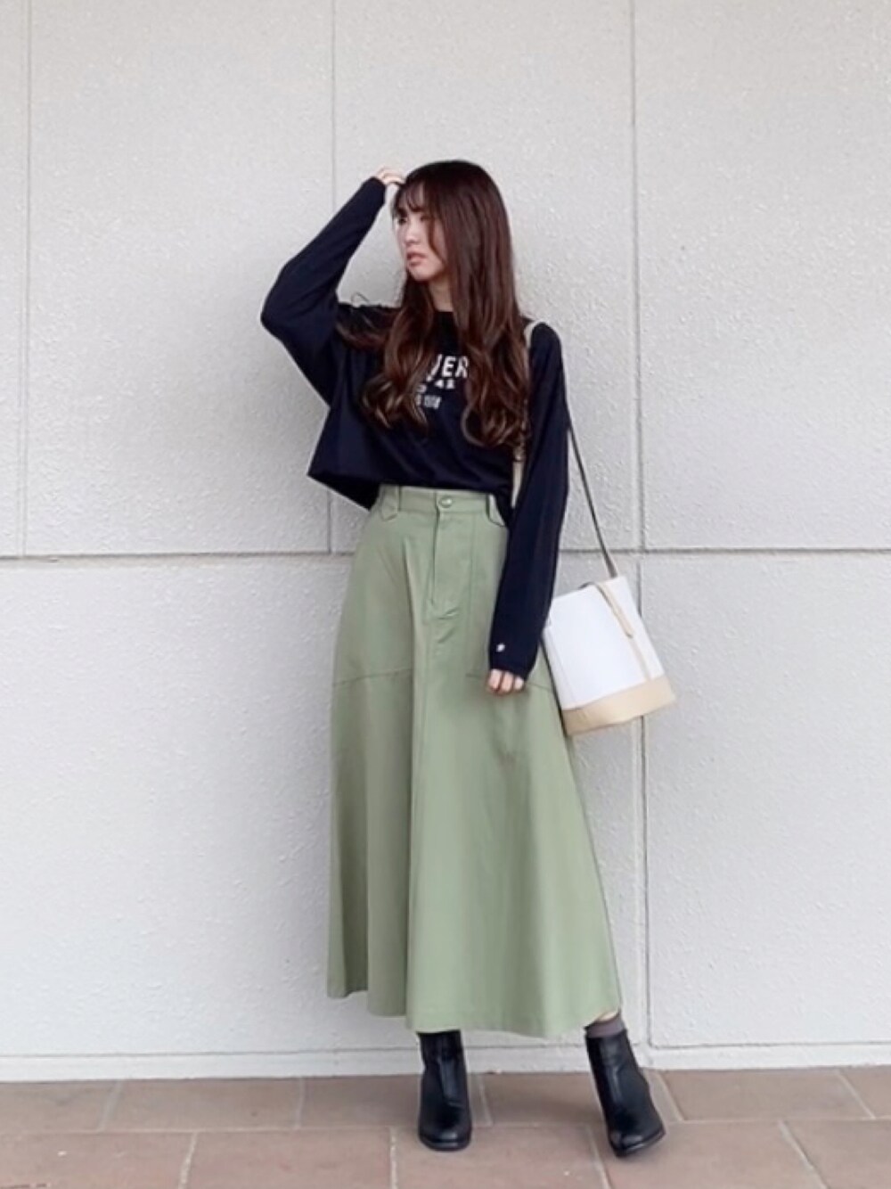 コーデがすっきりするショート丈のロンT🖤 コンバースのロゴがさりげなくおしゃれなアイテムです👏🏻 フレアスカートはシルエットが綺麗なデザインです🌿 パリッとした素材なので甘くなりすぎずカジュアルコーデにも合わせやすい✨ 私が着ている商品は、プロフィールのURLオンラインショップから見られます!