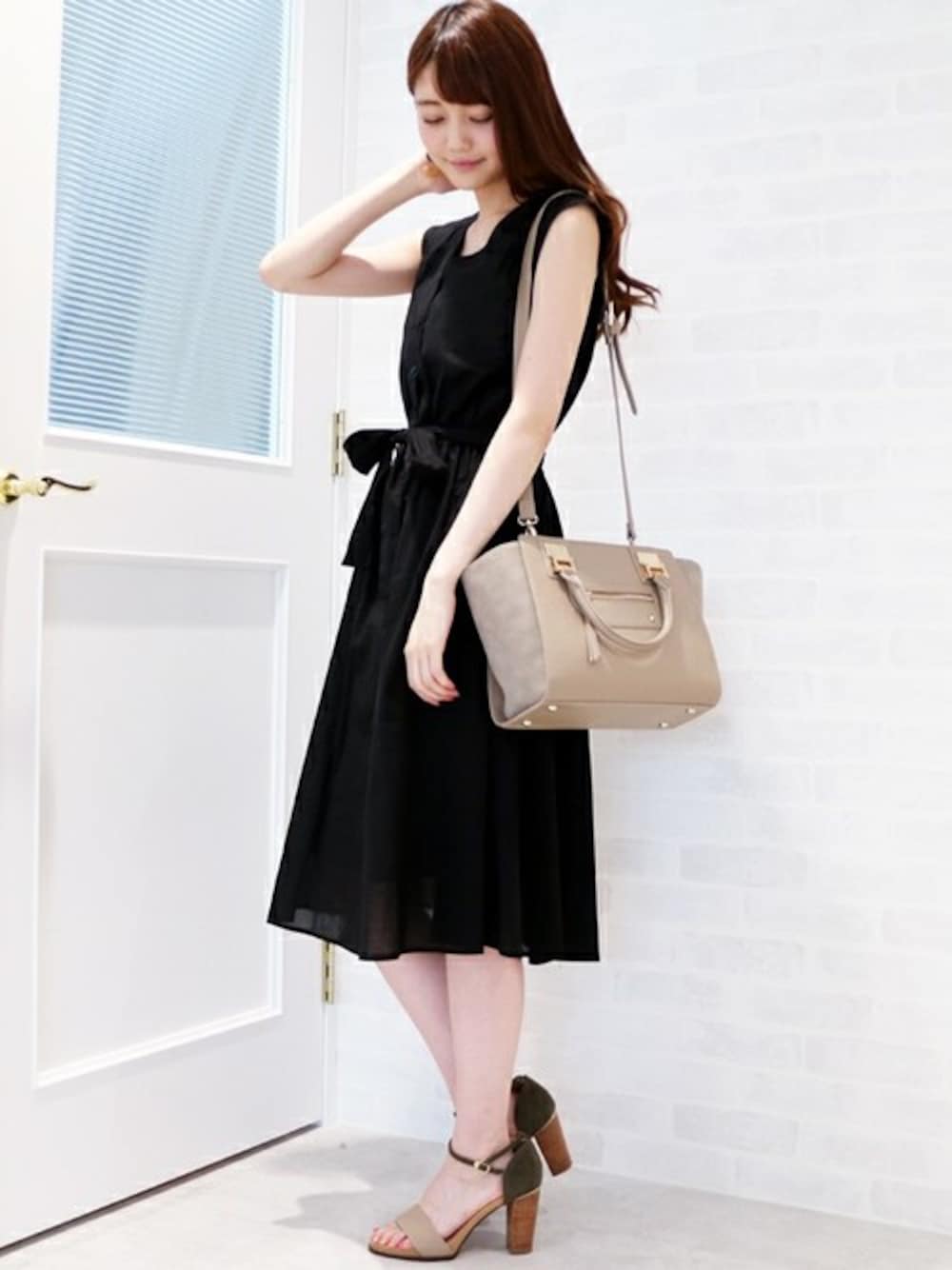 ONスタイルに頼れるコットンローンミモレワンピース! 共地リボンでウエストをシェイプして、女性らしいソフトなシルエットを演出。 ミモレ丈で大人っぽく、落ち着いたブラックもさらっと軽やかな印象に♪