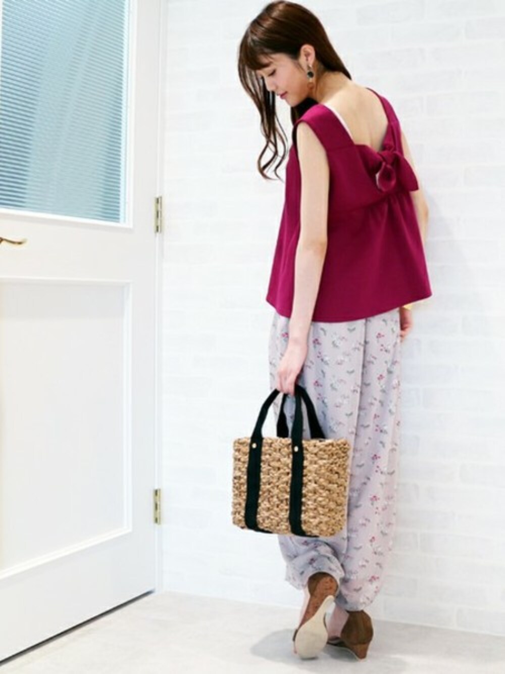 大人可愛くカジュアルを作るバックリボンカットソー! 夏にも着れるポンチで仕立て、後ろはリボンをひと結びしたようなデザイン。 落ち着いた色味のピンクは、甘すぎない上品な印象に♪