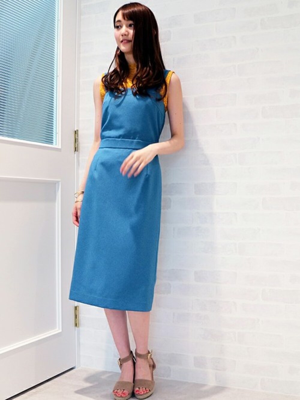 夏こそディティールが引き立つビスチェストレートワンピース! 膝の隠れるIラインを強調して大人カジュアルに鮮度をプラス。 ブルー×イエローで爽やかなきれいめカジュアルstyleに★