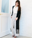 贅沢な総レース編みのニットガウン! 透かし編みと柔らかい肌触りが夏らしく、羽織るだけで存在感抜群★ トレンドのワイドパンツと合わせたコーデがおすすめ♪