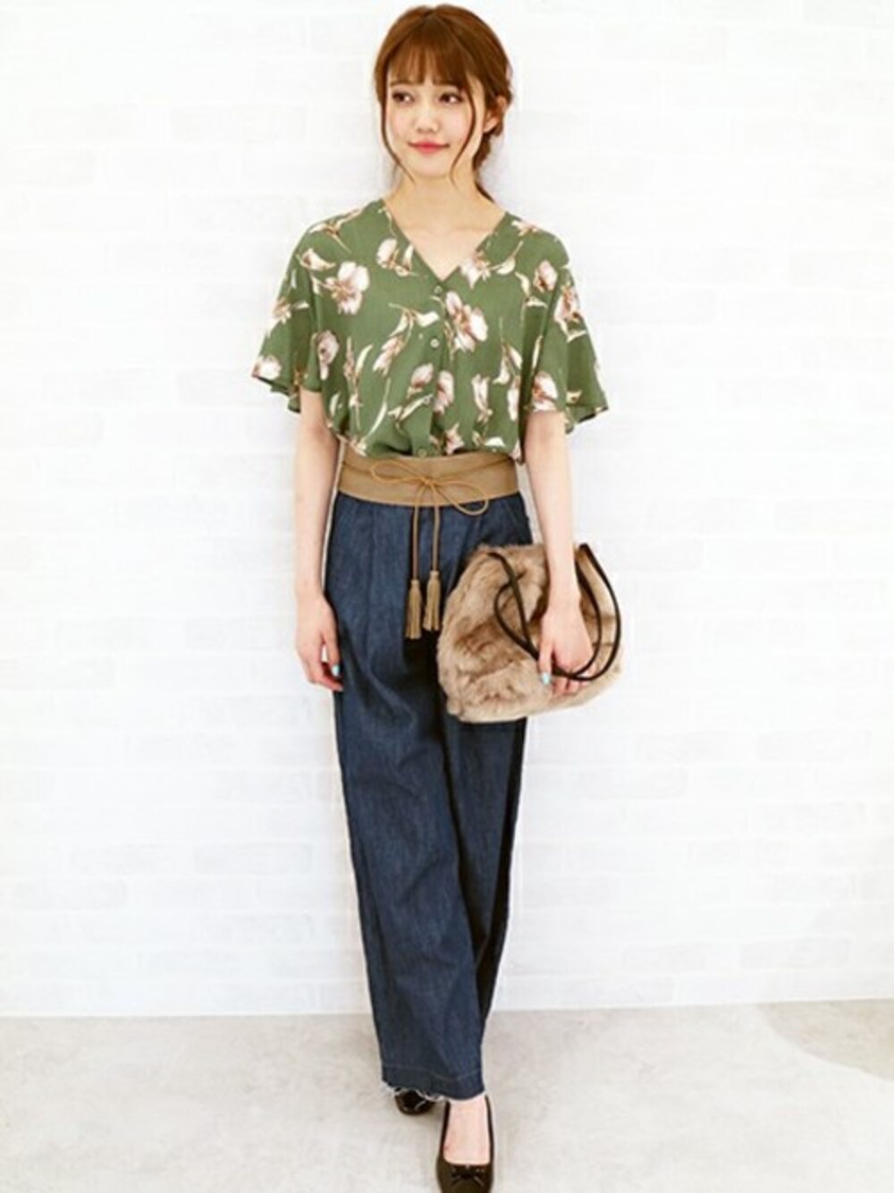 レトロなフラワープリントがかわいいブラウス! 存在感のあるデザインながら様々なボトムとの相性抜群★ デニム×サッシュ合わせで、トレンド感漂う大人カジュアルstyleに♪