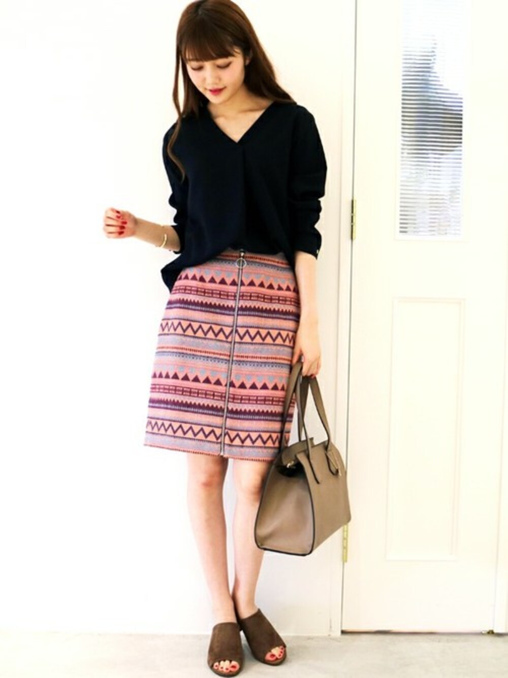 好配色がキ目を惹くジャガードジップタイトスカート! 幾何学風のミックスカラージャガードは、暑い時季でも秋を先取りできる1枚。 シンプルなTシャツと合わせるだけで、おしゃれ感漂うstyleに★