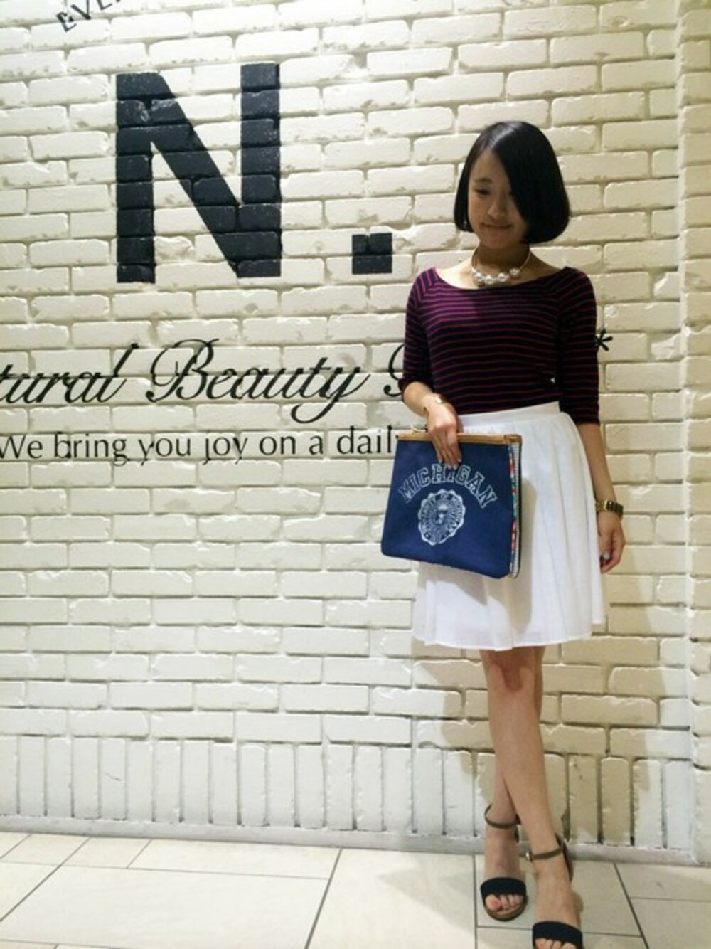 N. STAFF(N. Natural Beauty Basic* OFFICE)のTシャツ/カットソー「スクエアボーダーカットソー」を使ったコーディネート