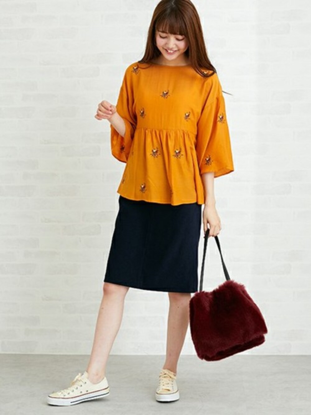 全面に小花柄の刺しゅうを施したフェミニンなブラウス。 落ち感がある素材で、着用した時にひらっと揺れる可愛いシルエット。 タイトスカートと合わせれば、女性らしいカジュアルstyleに♪