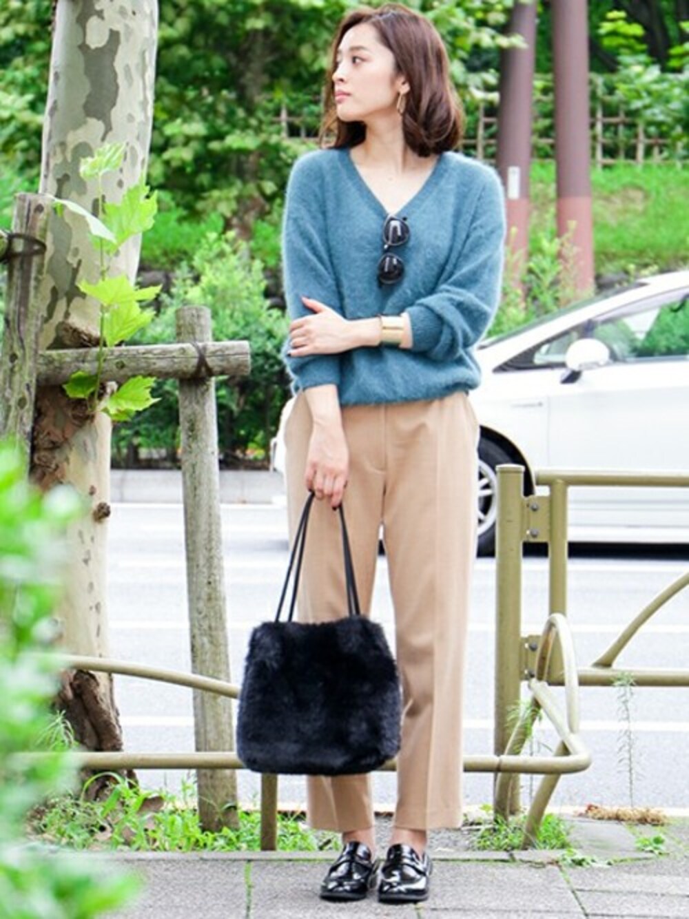 N. STAFF(N. Natural Beauty Basic* OFFICE)のニット/セーター「◆鹿の子編みアンゴラミックスVネックニット」を使ったコーディネート