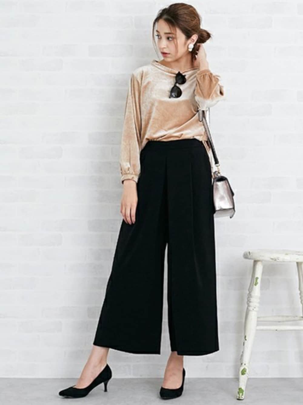 N. STAFF(N. Natural Beauty Basic* OFFICE)のTシャツ/カットソー「ボリュームスリーブベロアトップス」を使ったコーディネート