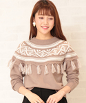 インパクト&トレンド感が出るフリンジジャガードニット! ノスタルジーを感じる色味や風合いで、こなれた大人カジュアルなデザイン。 ボトムはシンプルにまとめてフリンジを引き立たせて♪