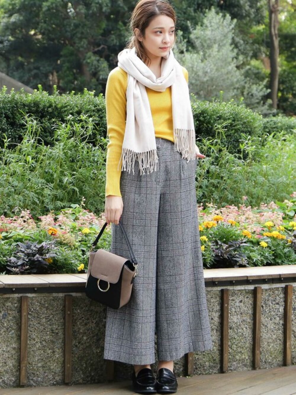 どんなスタイリングにも合うシンプルなストレートワイドパンツ! 今季トレンドのグレンチェック柄でレトロ&シックなお洒落をアップデート。 カラーニットと合わせて周りと差のつくトレンドstyleに♪